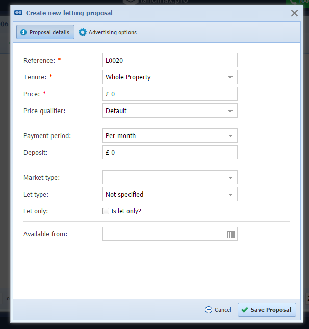 Auto-Advertising - will enable the proposal to be uploaded to the property portals and your website in a timed manner. Useful for setting properties to advertise, on a set date.